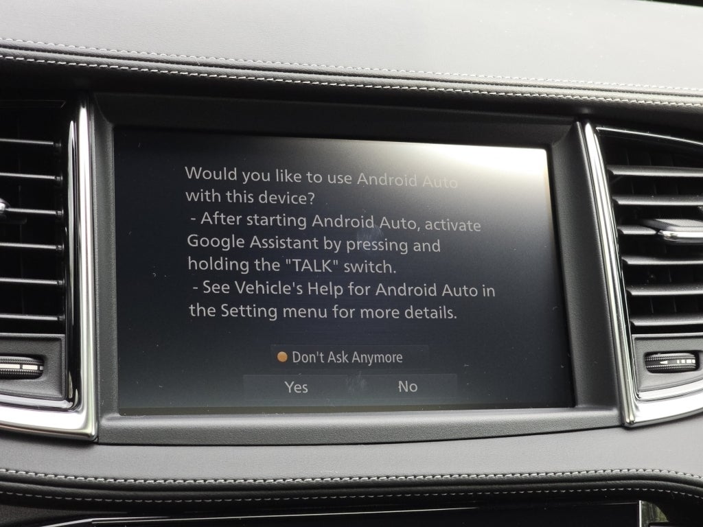 - Radio: AM/FM Audio System -inc: 6 speakers, INFINITI InTouch dual display system w/upper 8" and lower 7" touch screens, wireless Apple CarPlay, Android Auto, HD Radio technology, SiriusXM radio w/advanced audio features and 90-day complimentary trial, INFINITI voice recognition, INFINITI InTouch services, Siri eyes free and Wi-Fi hotspot